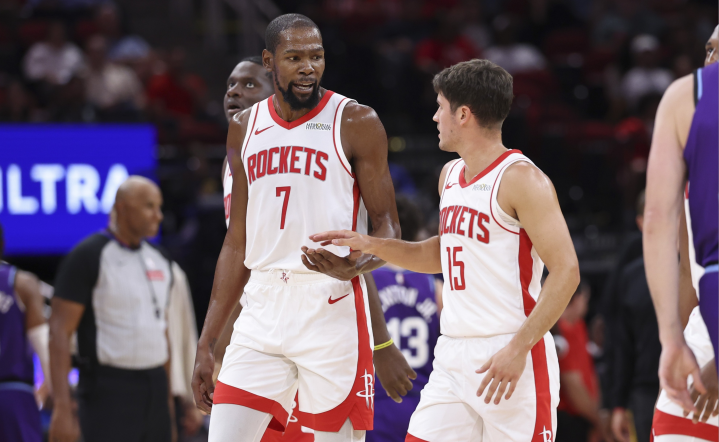 从火箭目前的阵容来看,乌度卡还处于不断摸索阵容的阶段,火箭的战术配合还不那么娴熟,杜兰特与其他球员的分割感还非常明显,火箭在攻防两端还显得非常生疏,火箭在上半场的防守做得不好,基本没有上赛季那种高强度配合极佳的防守轮转,由于范弗利特受伤赛季不能出场,火箭的进攻体系也得到大变,乌度卡以及火箭的球员都需要适应磨合,以及演练阵容,从而让球队的化学反应达到最佳值,毕竟火箭的年轻球员都涨球了,在球队的承担的角色和地位都更进一步,杜兰特的到来,范弗利特的受伤,让这个团队基本处于重新构架的攻防逻辑。